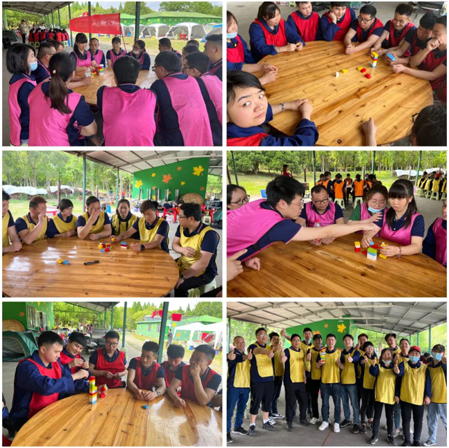 這個游戲的規(guī)則是教練員給每個隊都放一些積木,在給四個隊分別發(fā)一些小紙條,小紙條只能自己看,不能給別人看,也不能說話,隊員們要根據(jù)紙條的提示來了解自己擔(dān)任的角色以及任務(wù),筑塔員可以動手筑塔,其他人筑塔算犯規(guī),筑塔員要根據(jù)隊員們的手勢提示,來完成筑塔。